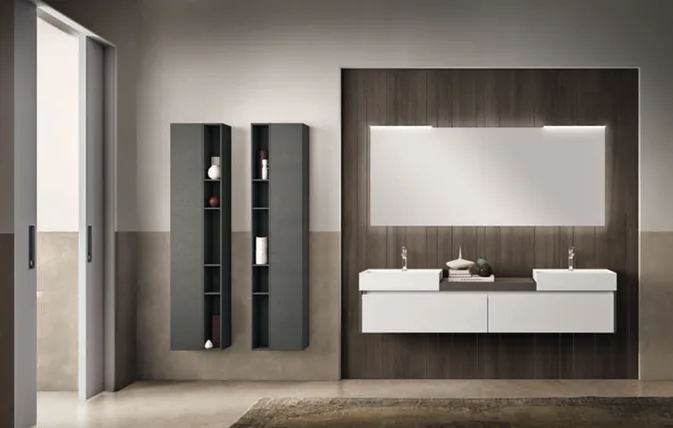 Die Serie MISURA besticht durch klare Linien und eine große Auswahl an verfügbaren Modellen, die elegante und funktionelle Lösungen ermöglicht. Die breite Vielfalt der Oberflächen macht MISURA zu einem transversalen Badezimmerprogramm, das sich jeder Räumlichkeit anpassen kann.