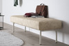 CHURCH ist eine Bank, die sich anpasst und für verschiedenste Lösungen eignet. Sie besteht aus einer gepolsterten Sitzfläche aus Stoff und einem Gestell aus lackiertem Metall.