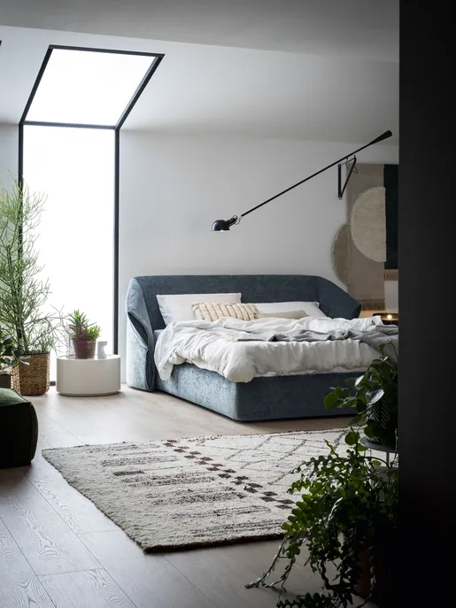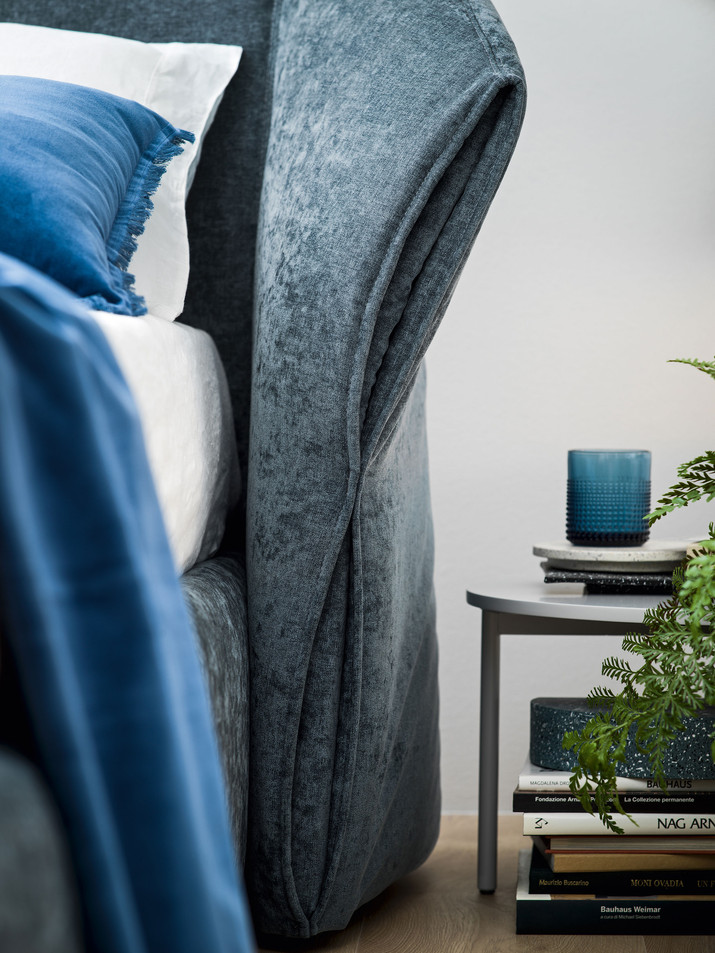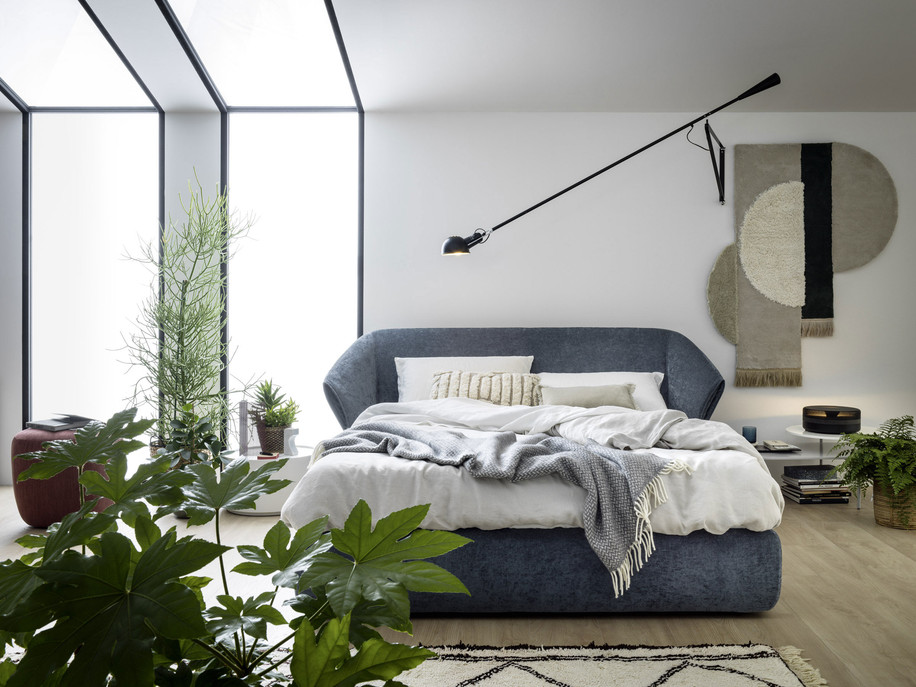Bestimmendes Element ist das geschwungene und äußerst bequeme Kopfteil. Die großzügigen Volumen laden geradezu zum Ausruhen und Entspannen ein. Außerdem kann der Bezug nach den eigenen Wünschen gestaltet werden. Dabei steht Ihnen ein manueller oder motorisierter Hubmechanismus zur Verfügung. Zum Bettenmachen können Sie damit einfach und bequem Matratze und Federholzrahmen in eine erhöhte Position bringen.