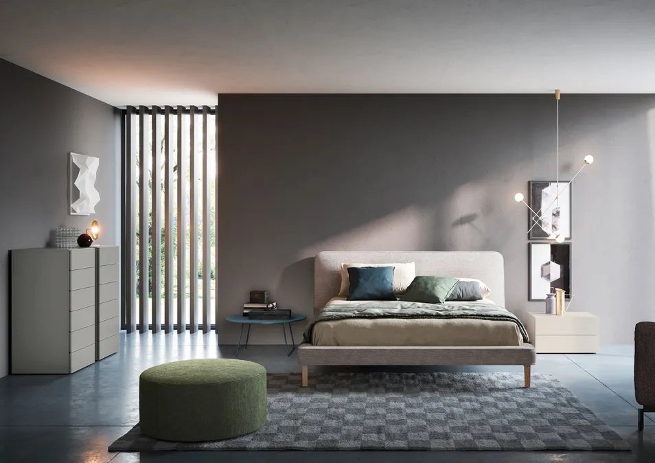 Das moderne, zeitgemäße Design, das von einem großen, gepolsterten Kopfteil geprägt wird, bestimmt den Stil des Bettes SEEYOU. Das Kissen mit seiner weichen, sich nach oben verjüngenden Form ist das charakteristische Element dieses Bettes. Die umlaufende, etwas breitere Bettumrandung mit schmalen Holzfüßen verleiht dem Bett Leichtigkeit und schlichte Eleganz.