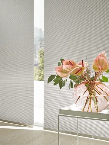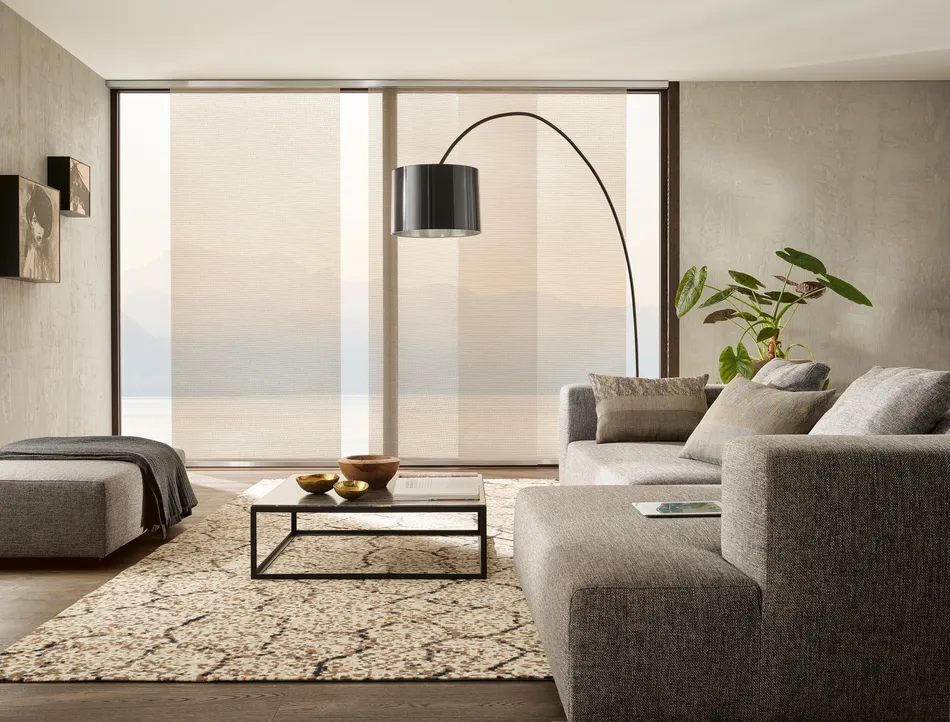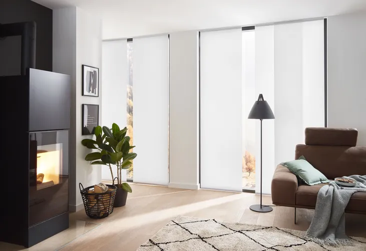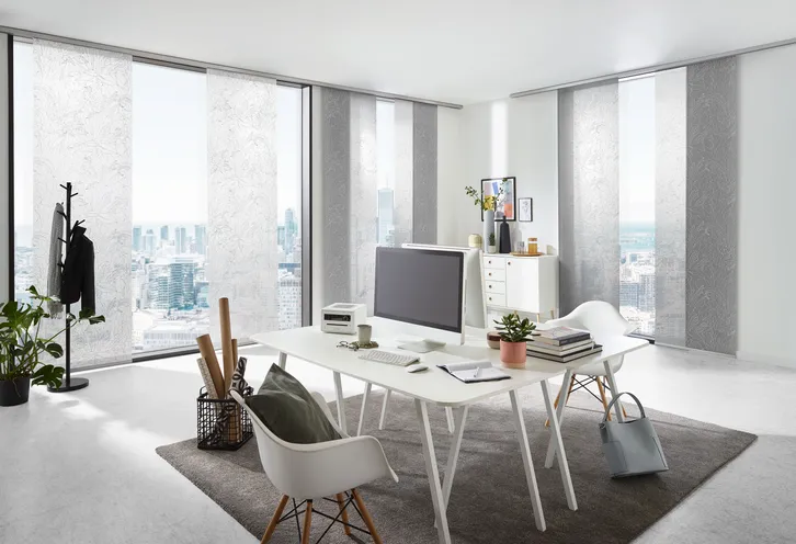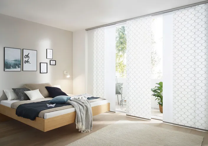 Der Flächenvorhang besticht durch großflächige Paneele, die sich genau nach Ihren Wünschen gestalten lassen. Die Paneele lassen sich dank des Schiebesystems beliebig seitlich verschieben und hintereinander stapeln. Ein abwechslungsreiches Spiel mit Licht, Schatten, Ein- und Ausblicken!
