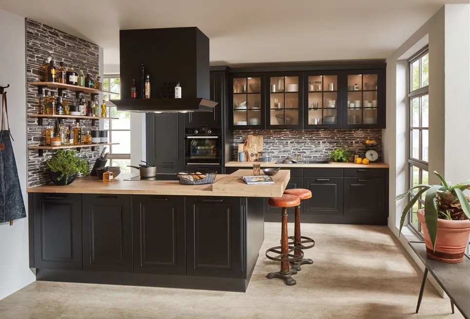 Der Kontrast zwischen moderner Architektur und Landhausküchen könnte kaum größer sein und ist doch topaktuell. Die traditionelle Landhausinterpretation tritt in diesem Vorschlag in den Hintergrund, dafür nehmen Elemente aus dem modernen Industriedesign mehr Raum ein.