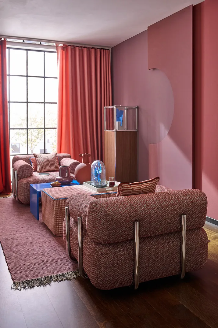 Durch die Verschmelzung von Kunst und Handwerk, getrieben vom Anspruch, Alltägliches durch Schönheit und Funktionalität zu erweitern, ist es uns gelungen, zeitlose Formensprache neu zu definieren. Ein Streben nach ganzheitlicher Gestaltung und die Überzeugung, dass Innovation nicht nur technisch, sondern auch ästhetisch und kunstvoll sein muss, findet in diesen Veloursstoffen in Hoch- und Tief-Webtechnik einen beeindruckenden Widerhall.