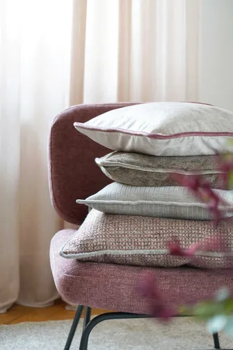 Die anspruchsvollen Texturen und weiche Haptik, vom flauschigen Chenille, über trendiges Cord-Design bis hin zu aussagekräftigen Velours in einer vielfältigen Farbpalette - laden zum Kombinieren und Neugestalten ein.