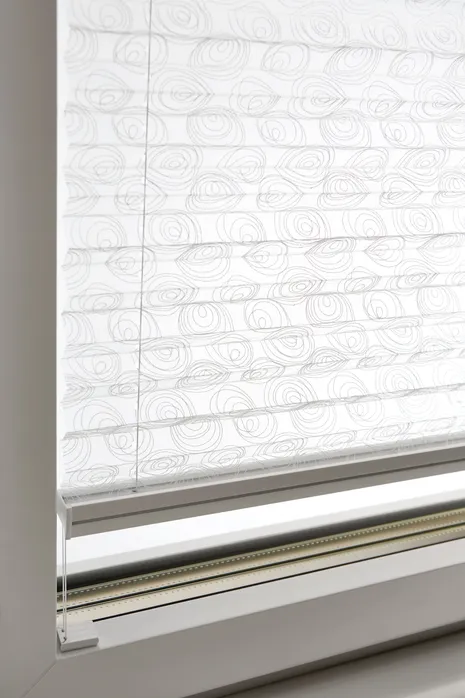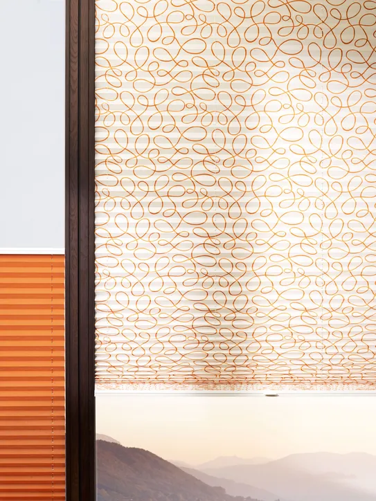 Diese textile Innenbeschattung ist in dauerhafte Falten gelegt und verleiht als praktischer Faltstore jedem Fenster das gewisse Etwas.