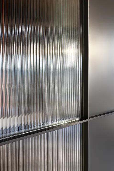 LAYER ist ein äußerst funktionaler Schiebetürenschrank mit frischem, modernem Erscheinungsbild. Durch die gerippten oder grau schattierten Glastüren entsteht ein effektvolles Spiel mit Transparenzen. Gleichzeitig sorgen diese aber auch dafür, dass sich der Inhalt aller Fächer zeitgleich überblicken lässt. Der Rahmenaufbau der Tür mit integriertem Griff bietet ein Höchstmaß an individueller Gestaltungsfreiheit, einschließlich der Möglichkeit, Glas mit anderen Materialien zu kombinieren.