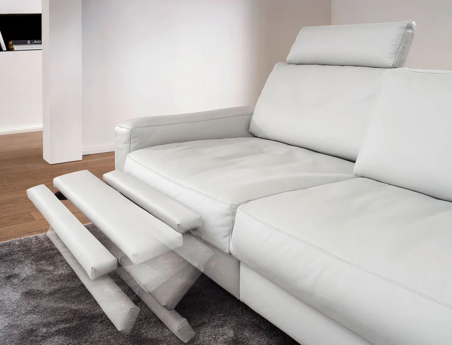 Die außergewöhnlich legere Polsterverarbeitung, in Verbindung mit der ausgeprägten Einzelsitzpolsterung und der einsteckbaren Funktionskopfstütze, verleihen diesem Modell seinen betont softigen Sitzkomfort.