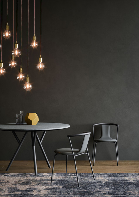 Mit seinem schlanken Rohrgestell und einer gerundeten Rückenlehne, welche in einer einzigen weichen, durchgehenden Linie zur Sitzfläche wird, der Stuhl AGEL einen Eindruck von solider Leichtigkeit. Er ist sowohl mit Stoff- als auch mit Lederbezug erhältlich.