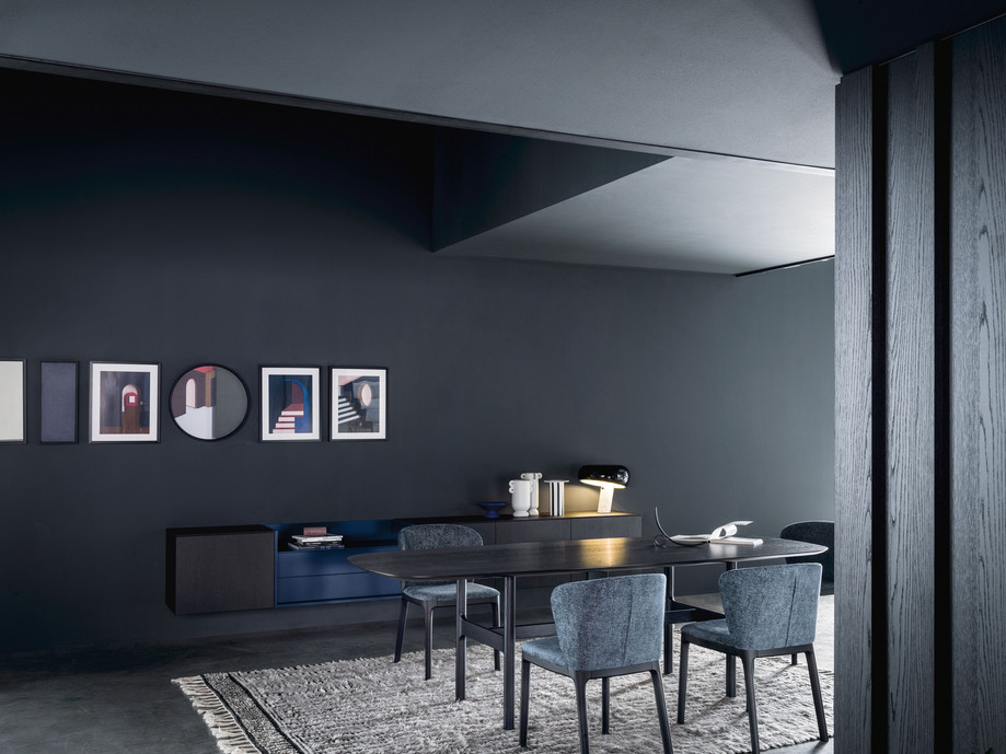 Dem Stuhl NAVY gelingt es, sich sowohl an klassisch als auch an modern eingerichtete Räumlichkeiten anzupassen. Gestell und Stuhlbeine wurden so verarbeitet, dass die Details, die die verschiedenen Teile, aus denen der Stuhl besteht, verbinden, besonders hervorgehoben werden. Die gepolsterte Sitzfläche weist eine weiche und sanft geschwungene Linienführung auf, die insbesondere die Version NAVY Tub noch einladender und bequemer macht.
