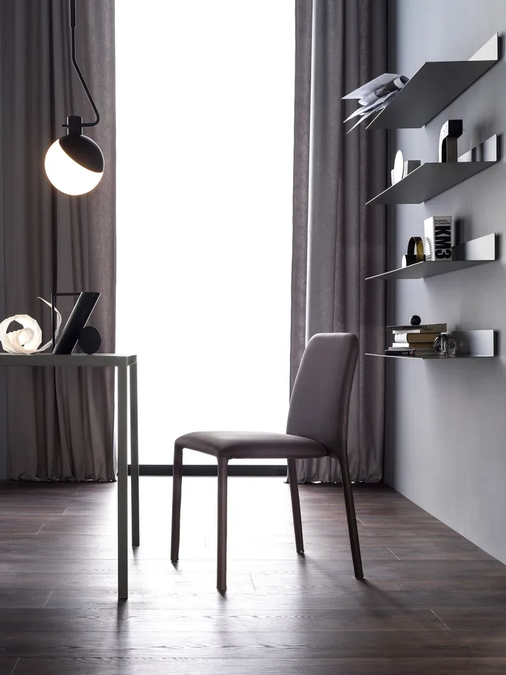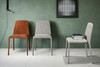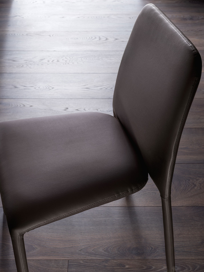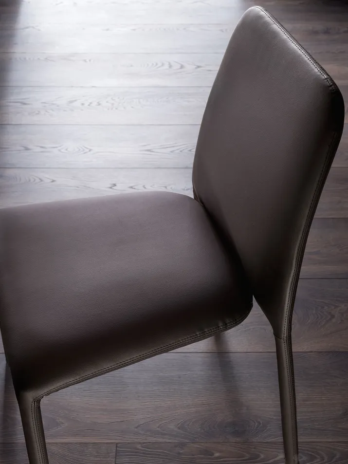Stapelbar und abziehbar. Der Stuhl TIME besticht durch seine klaren und weichen Linien und ist vollständig mit Stoff, Leder oder Textilleder bezogen.