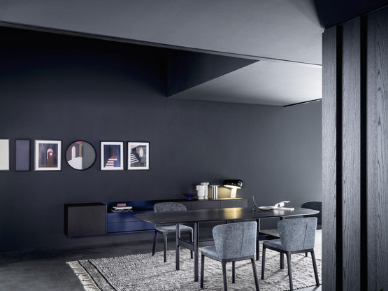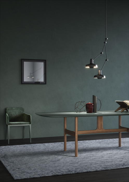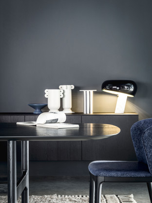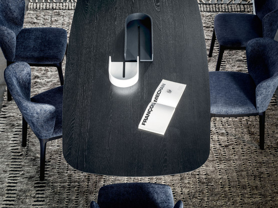 Die Form des Tisches TORII erinnert an das antike Eingangsportal eines japanischen Tempels. Er präsentiert sich in einer eleganten Material-Farb-Kombination und findet in den unterschiedlichsten Räumlichkeiten Verwendung.