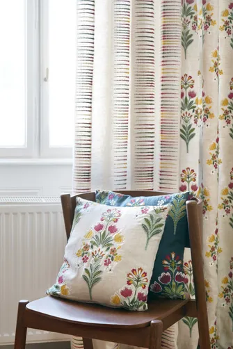 LANDHAUS 443 zeigt traditionelle Farben und liebevoll gestickte Blumen-Designs in außergewöhnlicher Handwerkskunst. Energiegeladen veredelt dieses Arrangement, ob topmodisch oder ländlich elegant dekoriert, jedes Wohnambiente einzigartig. Stilvoll drapierte Dekorationsstoffe verleihen jedem Raum angenehme Akustik. Perfekt abgestimmt mit LANDHAUS 442.