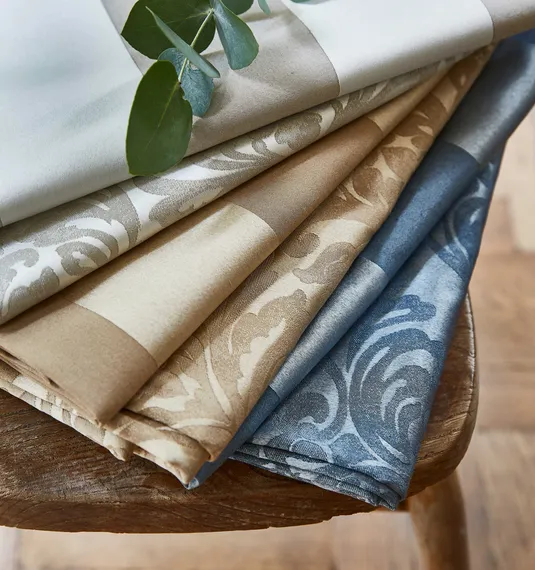 Inspiriert von prächtigen Herrenhäusern, verkörpert STIL&KLASSIK 395 perfekt das Thema eleganter Innenräume. Der zeitlose Damast der Kollektion wird durch einen vielseitigen Blockstreifen ergänzt. Beide Designs sind mit einer satinierten Oberfläche versehen, die einen von Herrenhäusern inspirierten Look erzeugt. Das Thema der Erhabenheit von STIL&KLASSIK 395 setzt sich in der Farbpalette der Kollektion fort. Die Farbpalette reicht von üppigen Rubintönen bis hin zu satten Salbeifarben, die sich für die luxuriösesten Räume eignen.