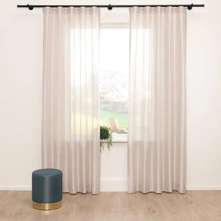 Wenn Sie auf der Suche nach einem Hingucker sind, wählen Sie dann den YOUNG&TREND 1295. Mit dieser silbernen, goldenen oder bronzenen Farboption machen Sie ein Statement. Dieser Transparentstoff ist auch wunderschön zu kombinieren: mit einem Unistoff für mehr Ruhe oder gerade mit einem glänzenden Stoff, um YOUNG&TREND 1295 Nachdruck zu verleihen. Der Stoff ist raumhoch und großenteils mit recycelten Garnen gemacht: 45 % recycelter Polyester und 45 % recycelte Baumwolle. Er ist GRS und Oeko-Tex zertifiziert.