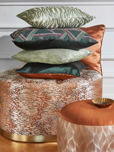 Inspiriert von der pulsierenden Kultur Marokkos präsentiert STIL&KLASSIK 386 eine faszinierende Vielfalt an Texturen, die von taktilen Stickereien und Jacquards bis hin zu luxuriösen Chenilles reichen. Die eleganten Designs der Kollektion mit ihren aufwendigen Korbgeweben und lebhaften geometrischen Mustern haben durchweg einen luxuriösen Glanz und eignen sich so für eine Vielzahl von Einrichtungsstilen. Eine üppige Palette kostbarer juwelenartiger Töne unterstreicht das marokkanische Thema, das von tiefen Rubintönen über goldenen Safran bis hin zu leuchtenden Türkistönen reicht.